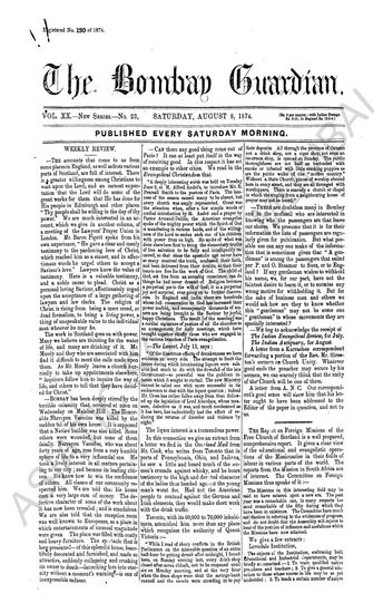 The Bombay Guardian, 8 August 1874