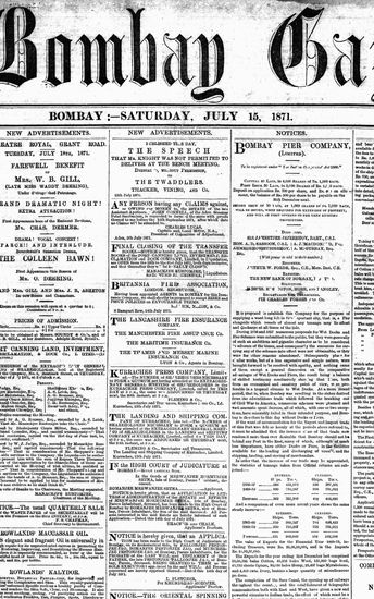 The Bombay Gazette, 15 July 1871