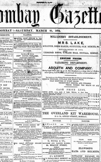 The Bombay Gazette, 21 March 1874