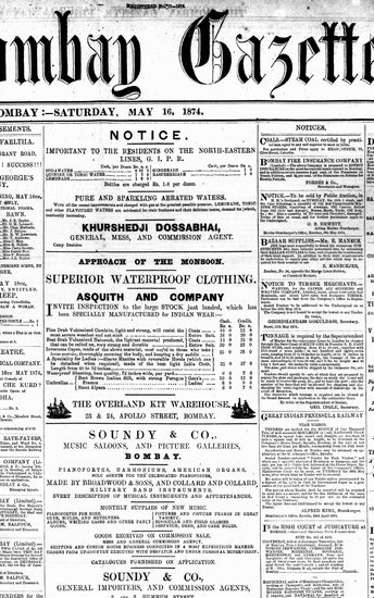 The Bombay Gazette, 16 May 1874