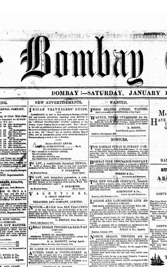 The Bombay Gazette, 16 January 1875
