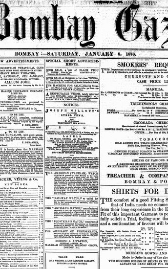 The Bombay Gazette, 8 January 1876