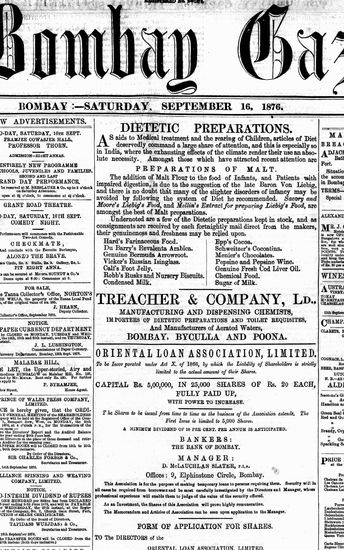 The Bombay Gazette, 16 September 1876