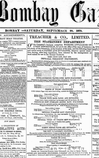 The Bombay Gazette, 20 September 1879