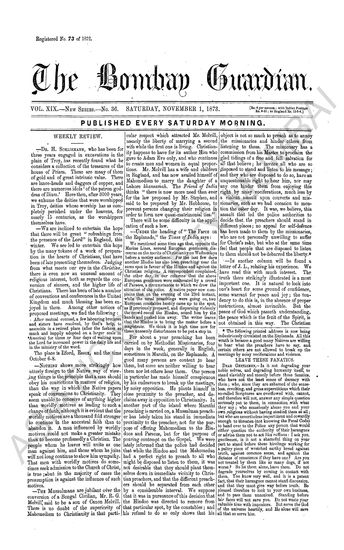 The Bombay Guardian, 1 November 1873