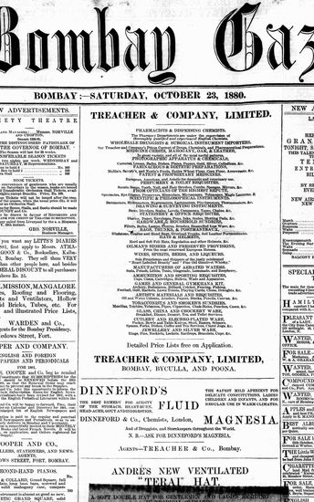 The Bombay Gazette, 23 October 1880