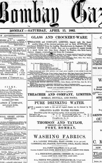 The Bombay Gazette, 15 April 1882