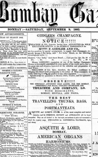 The Bombay Gazette, 9 September 1882