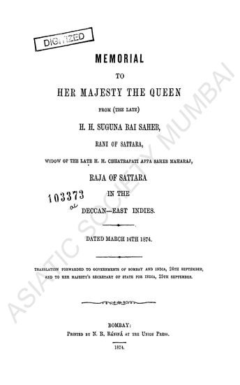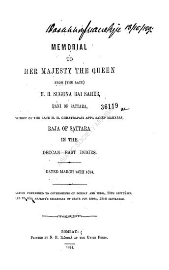 Memorial Her Majesty the Queen From the Late H. H. Sugu ...