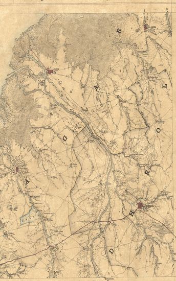 CONVENTIONAL SIGNS. Trigonometrical Stations & Points respectively Δ & ο or ό. Taluka Boundaries, Approximate Boundary, Metalled roads, Country roads, Foot paths, Cultivation, blank. Edge of Cultivation, Waste, Pahlias or In Memoriam stones †. Numerals without an affix indicate Trigonometrical heights in feet above mean sea level ; thus 365. Numerals with the affix P indicate the population of the town or village they are they are printed near, thus 472 P; with affix r they indicate the relative heights in feet of banks to beds of water courses, thus 12r. The Longitudes are referrible to Madras Observatory, Old Value, viz., 80° 17' 21 , to which a correction of - 3' 1'' must be applied to reduce to the most recent value, viz., 80° 14' 20. Vide Nautical Almanac for current year.