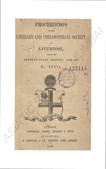 The latitudes from that of Kalianpur, Assumed as 24° 7' 11.2, through the Karachi Longitudinal Series. The Longitudes are referrible to Madras Observatory, taken as 80° 17' 21 to which a correction of - 2' 30 must be applied to reduce to the most recent value, 80° 14' 51 |