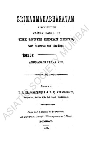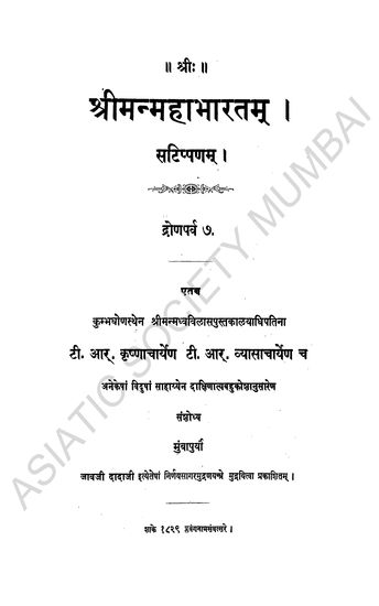 | Author | : | Mahabharata Krishnacharya, T. R. (Ed.) Vyasacharya, T. R. (Ed.) |