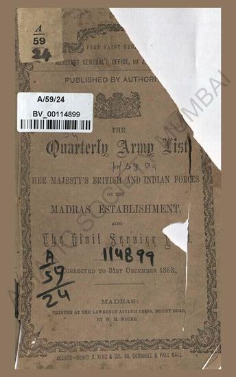 | Subject | : | India-Army-Bombay Civil Services Asia-India. |