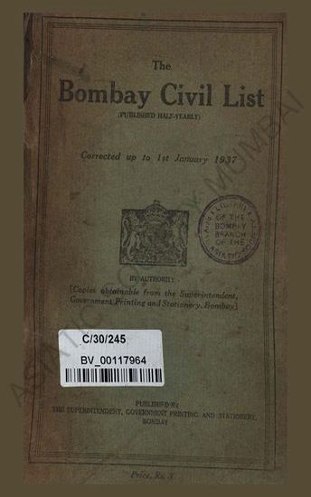| Subject | : | India-Bombay Civil Services Asia-India. |