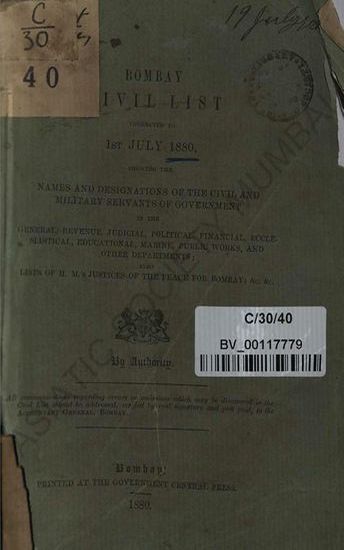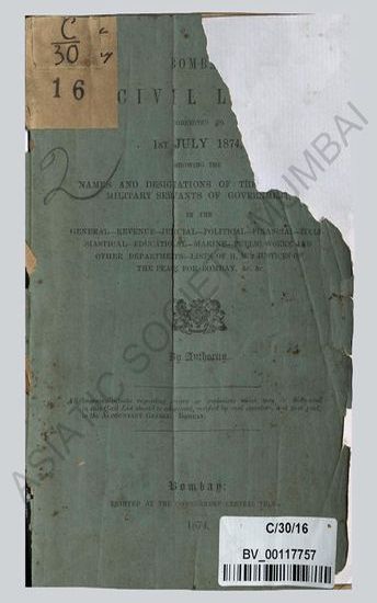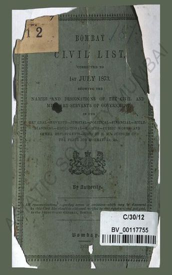 | Subject | : | India-Army-Bombay Civil Services Asia-India. |
