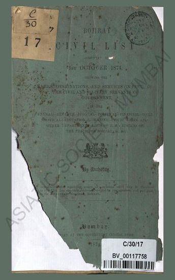 • Bombay civil list corrected upto 1st October 1874, show ...