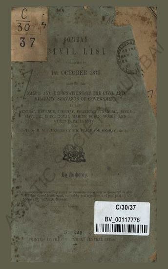 Bombay civil list corrected upto 1st October 1880, showing the names and designations of the civil and military servants of government.