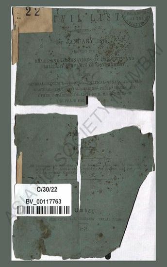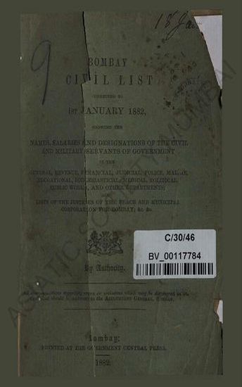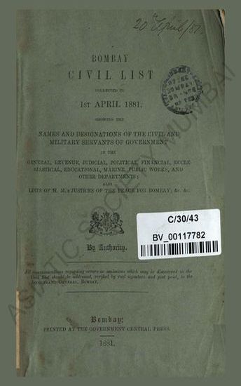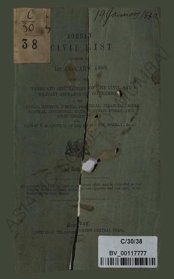 | Subject | : | India-Army-Bombay Civil Services Asia-India. |