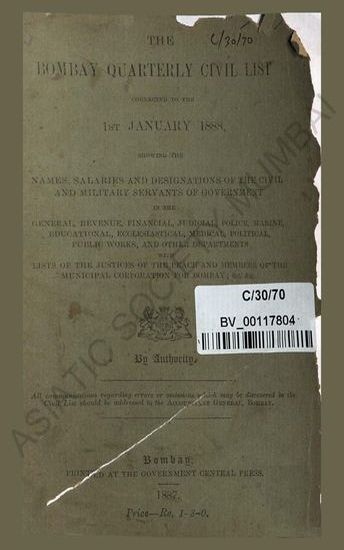 | Subject | : | India-Bombay Civil Services Asia-India. |