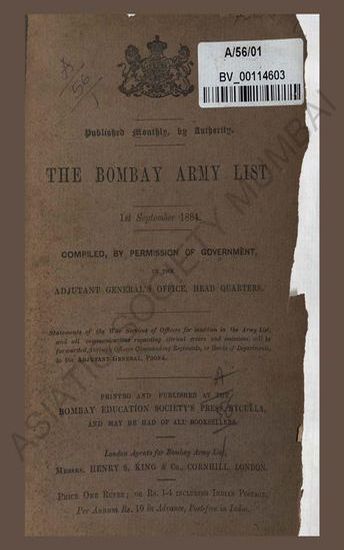 | Subject | : | India-Army-Bombay; Civil Services; Asia-India. |