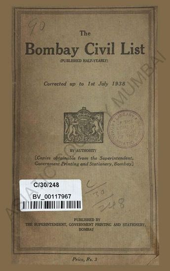 Subject : India-Bombay; Civil Services; Asia-India.