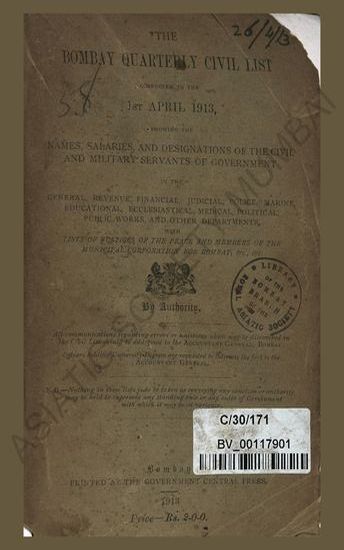 | Subject | : | India-Bombay; Civil Services; Asia-India. |