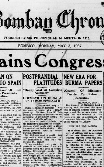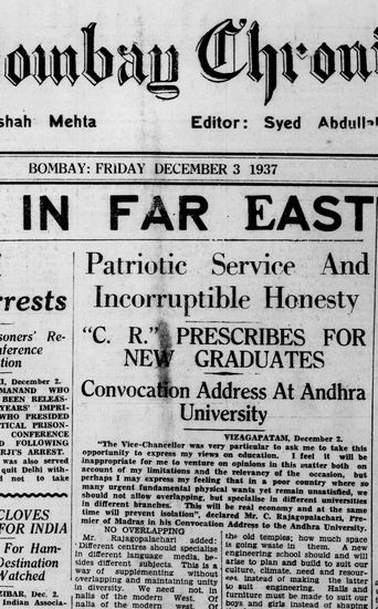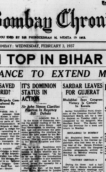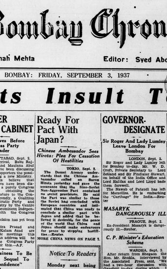 The Bombay Chronicle, 3 November 1937
