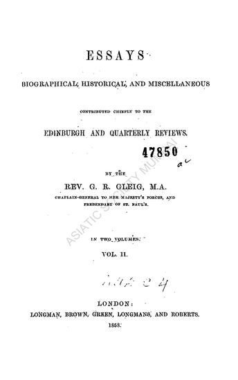 Essays, Biographical, Historical and Miscellaneous, in ...