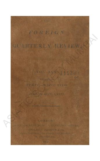 Foreign Quarterly Review. Vol XIV. Published in April, ...