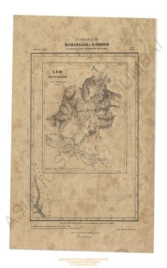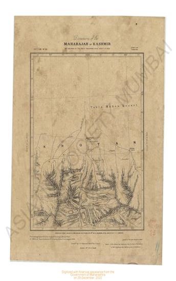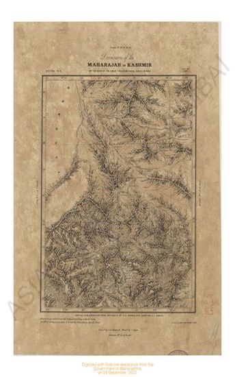 Dominions of the Maharajah of Kashmir on the basis of the great trigonomentrical survey of India, Part of Nubra, Tankse and part of Ladak. Section no.12