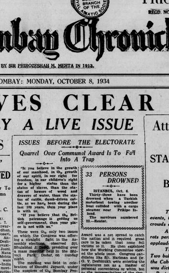 The Bombay Chronicle, 8 October 1934