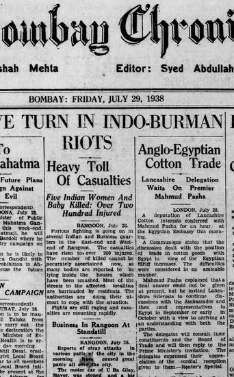 The Bombay Chronicle, 29 July 1938