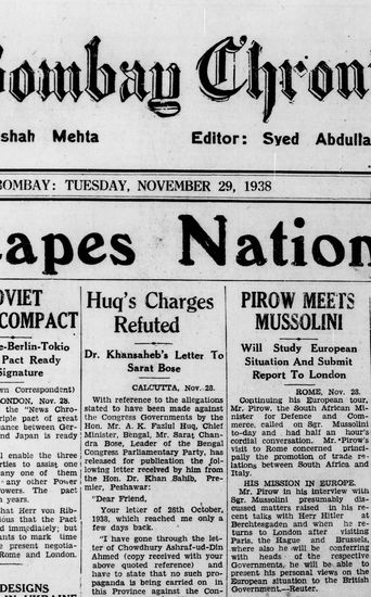 The Bombay Chronicle, 29 November 1938
