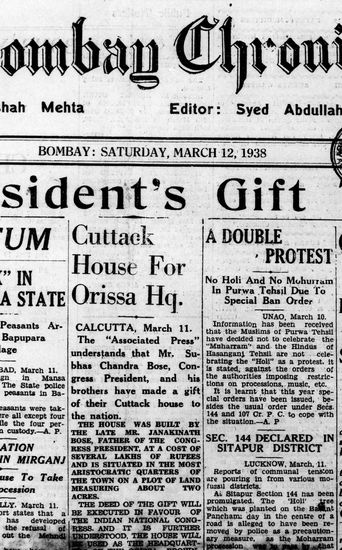 The Bombay Chronicle, 12 March 1938