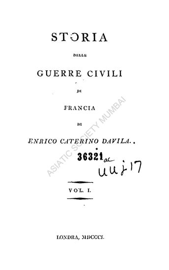 Storia Delle Guerre Civili De Francia. in 6 Vols.(Vol.I ...