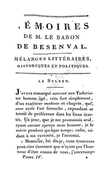 Memoires De M.Le De Besenval in 3 Vols.(Vol.IV )