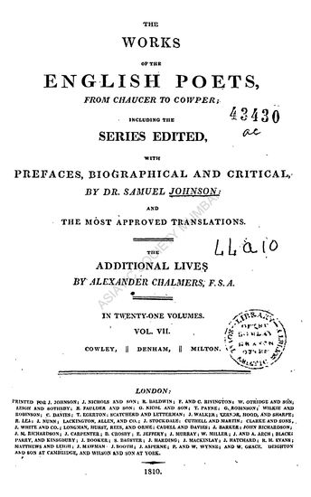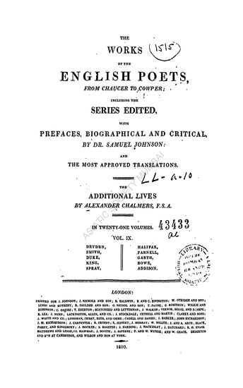 | Author | : | Dr. Johnson, Samuel ( Ed. ) Chalmers, Alexander |