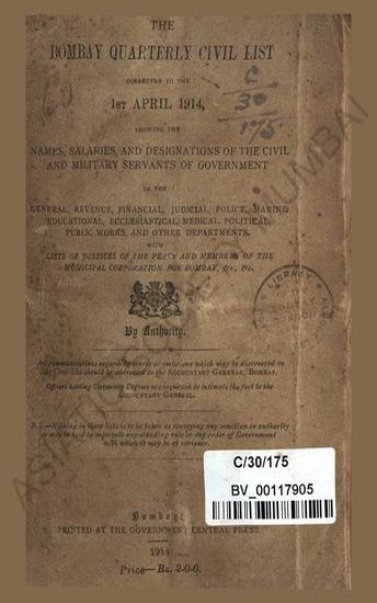 | Subject | : | India-Bombay, Civil Services, Asia-India. |