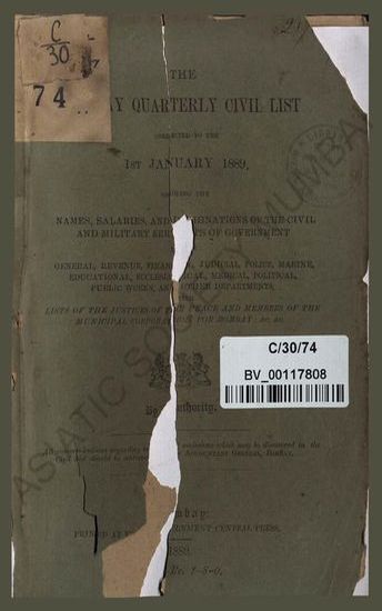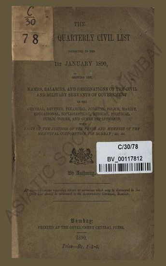 | Subject | : | India-Bombay, Civil Services, Asia-India. |