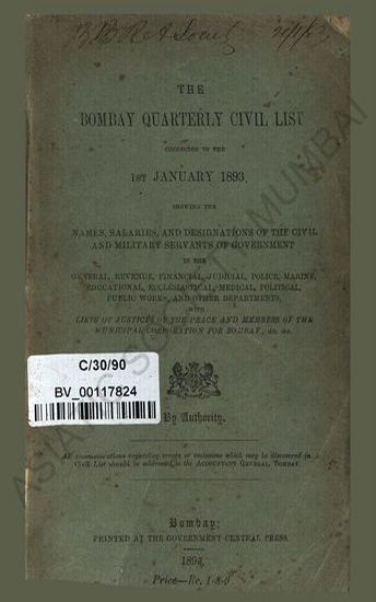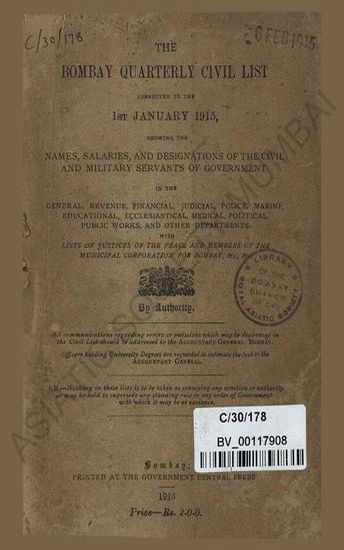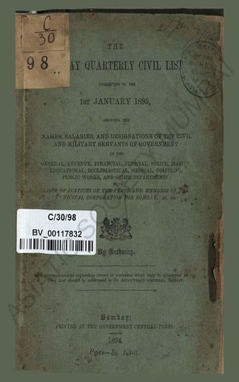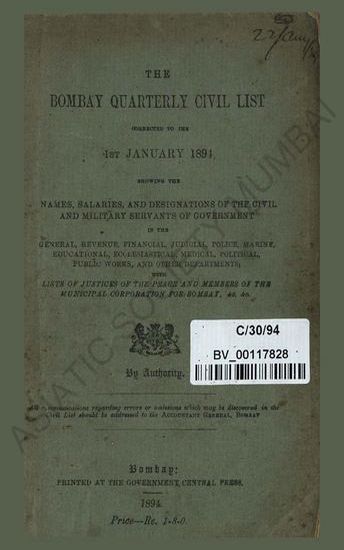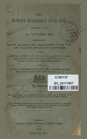 | Subject | : | India-Bombay, Civil Services, Asia-India. |