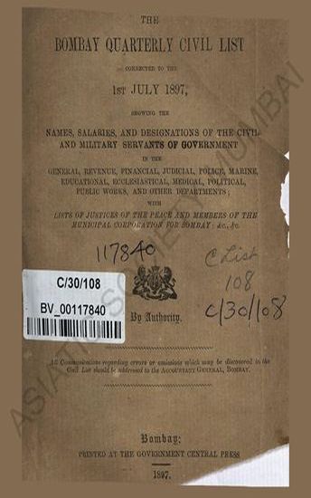 | Subject | : | India-Bombay, Civil Services, Asia-India. |