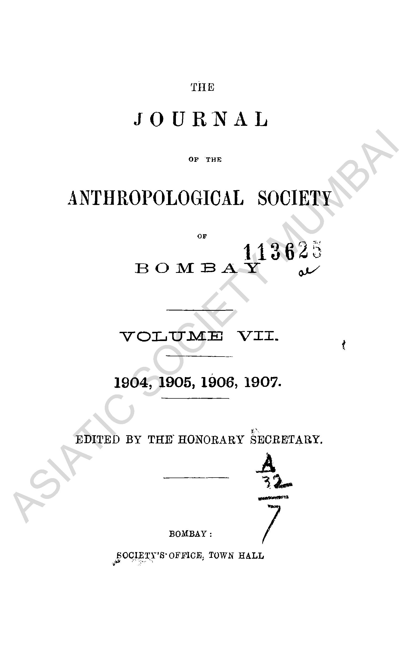 | Series | : | Anthropological Society of Bombay VoI.IV, No.1, No.2, No.3, No.4, No.5, No.6, No.7 |