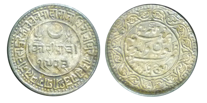 Princely State: Jhalawar, In the name of Bahadur Shah II, AH 1253-1274, AD 1837-1858, (Jhalawar) Mint, Silver, 20mm, 11.21gm