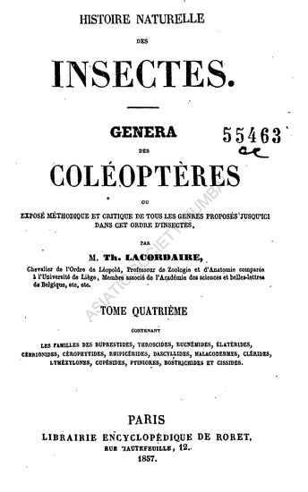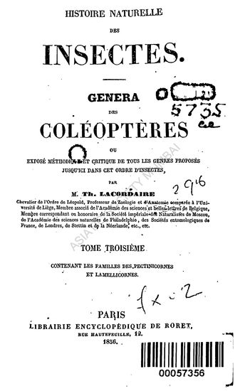 Histoire Naturelle Des Insectes. Genera Des Coleopteres ...