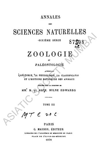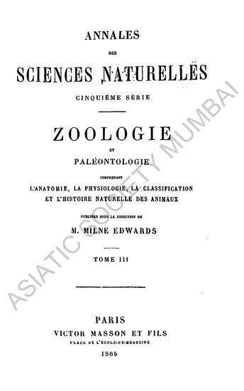 Annales des Sciences Naturelles; 5th Series., Zoologie ...