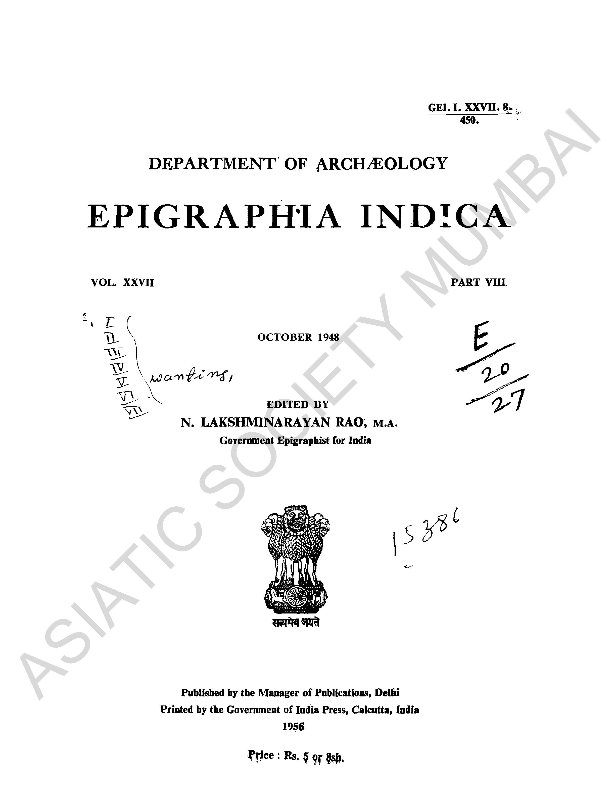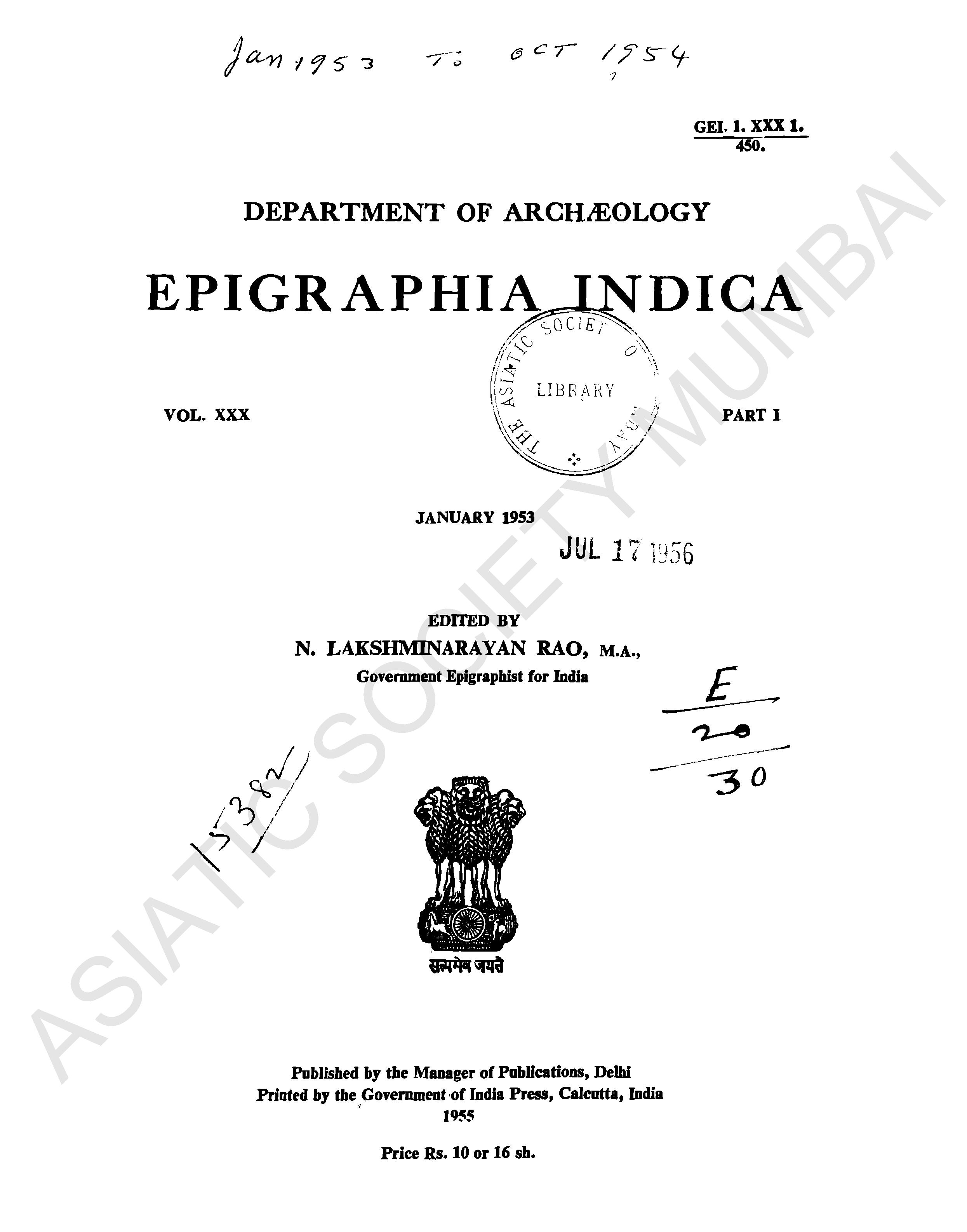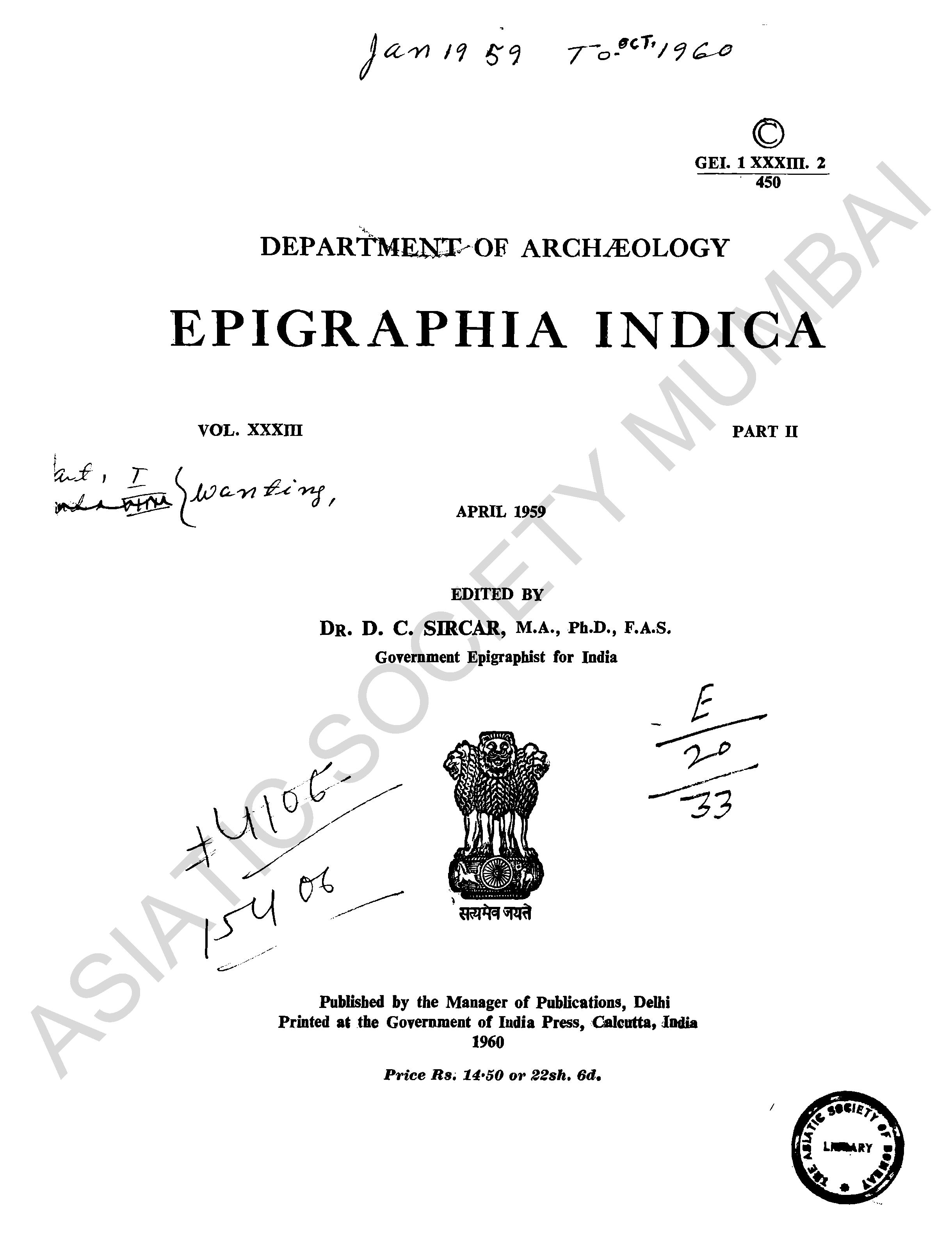 | Subject | : | Inscriptions - India, India - Antiquities, Inde - Antiquities |