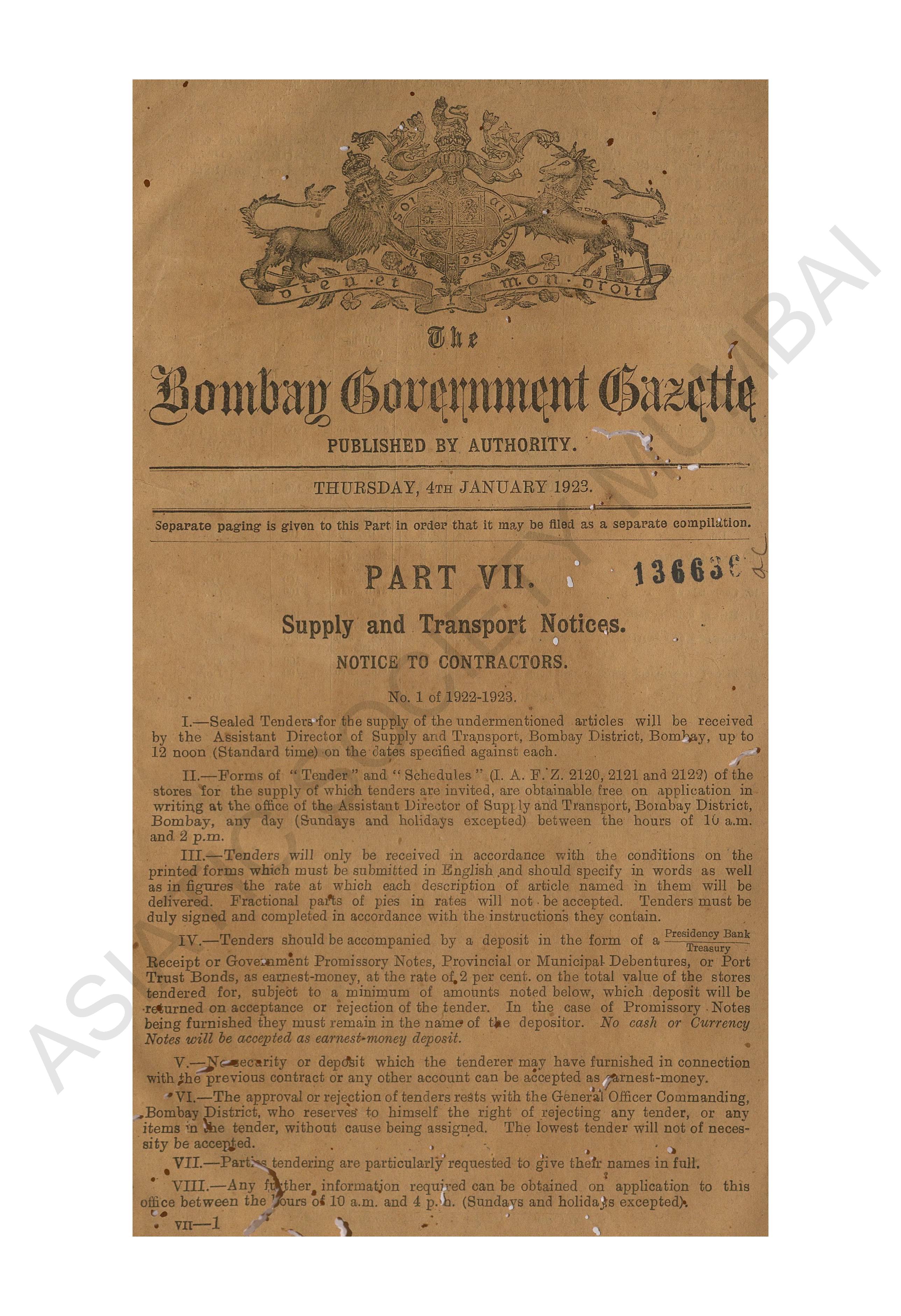 | Subject | : | Bombay (India : State) - periodicals, India - Bombay (state) |