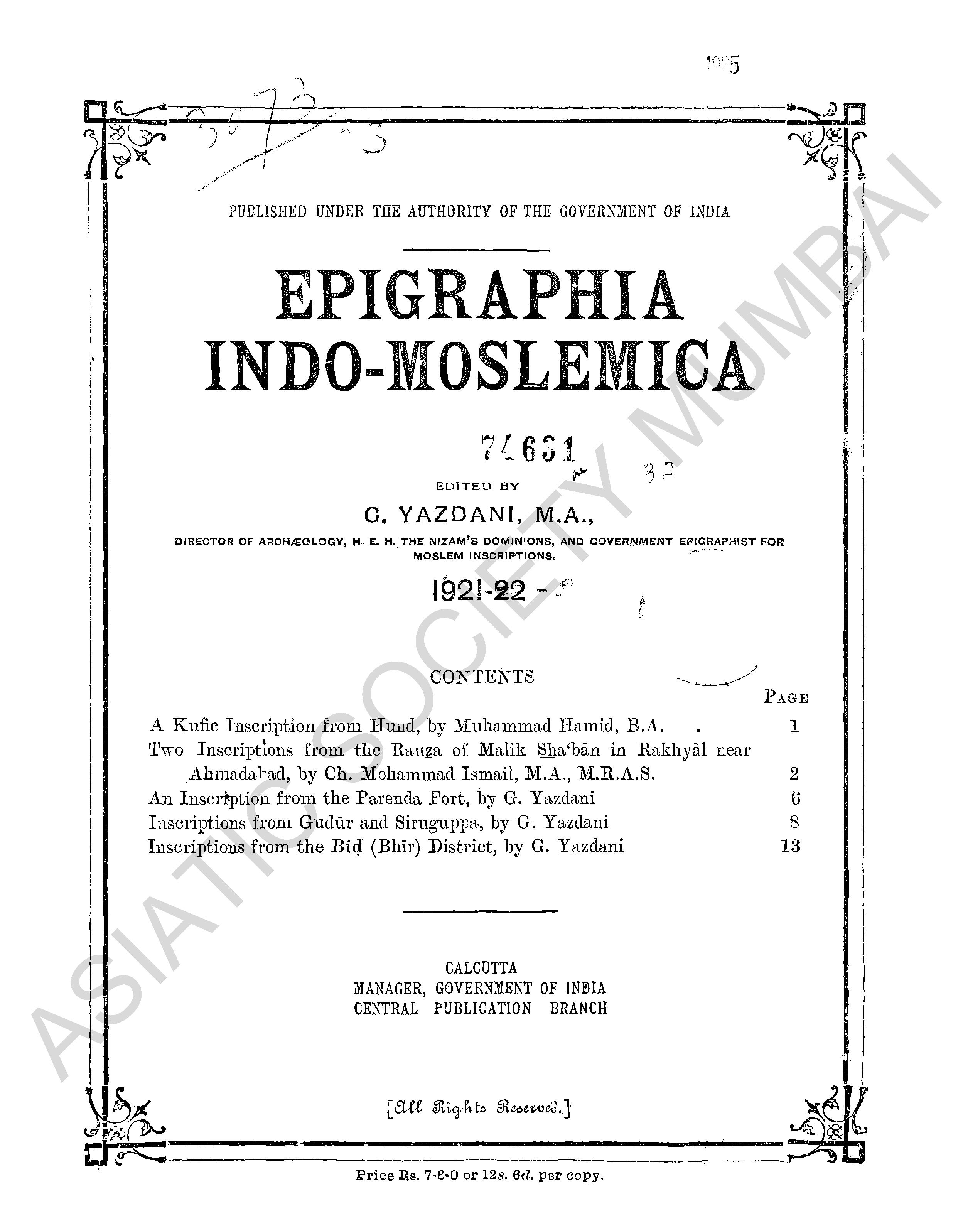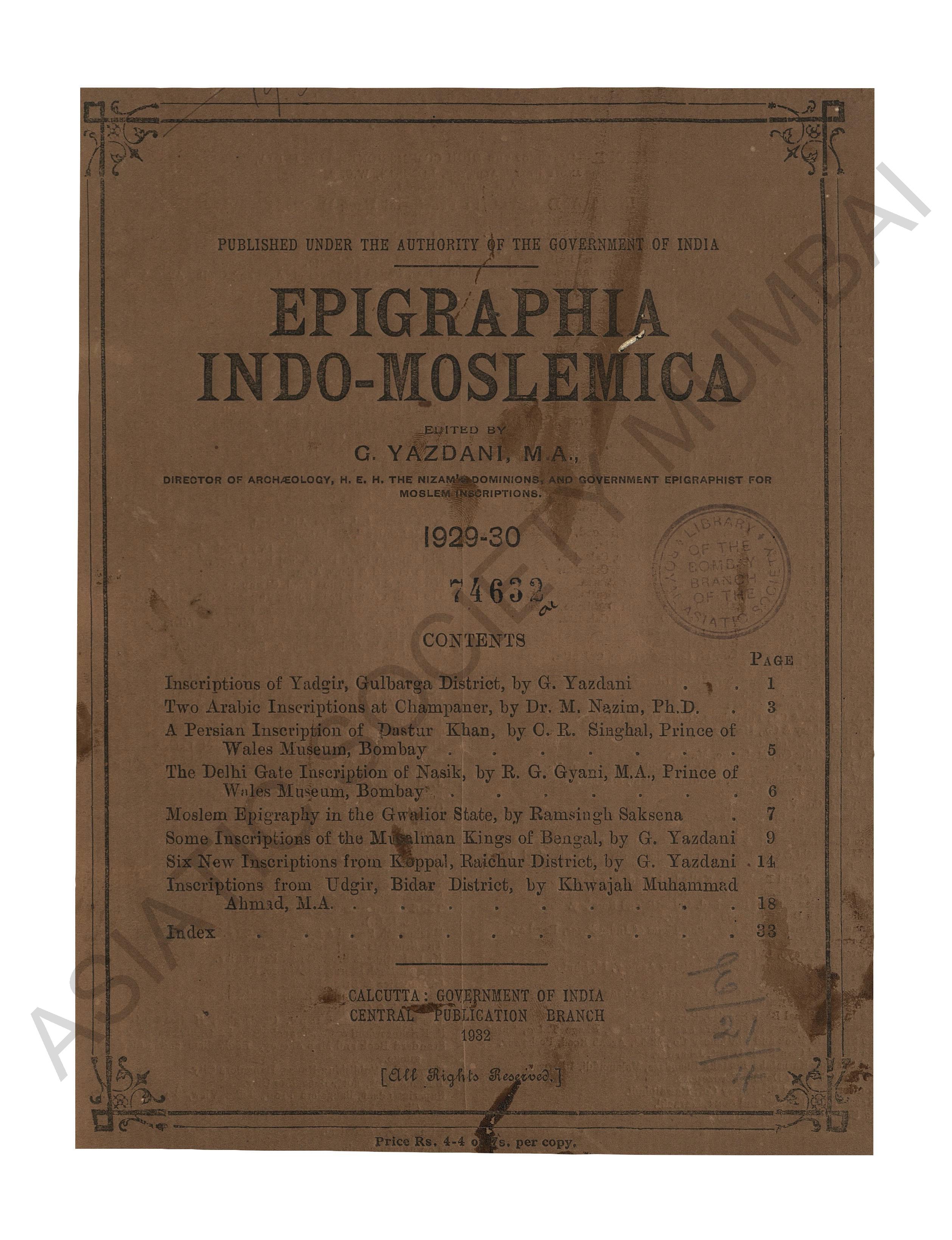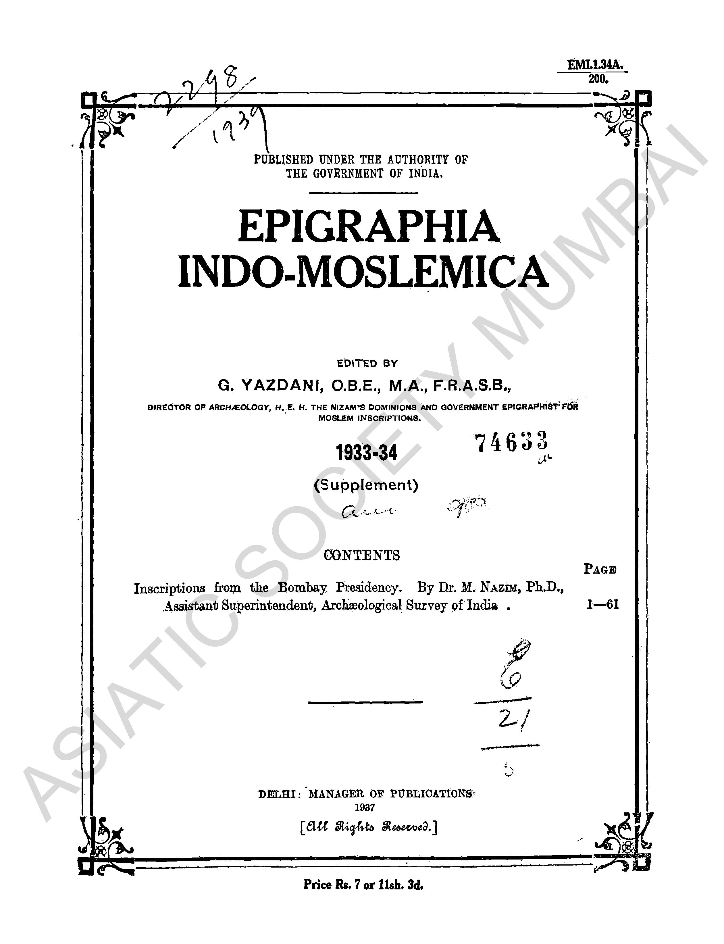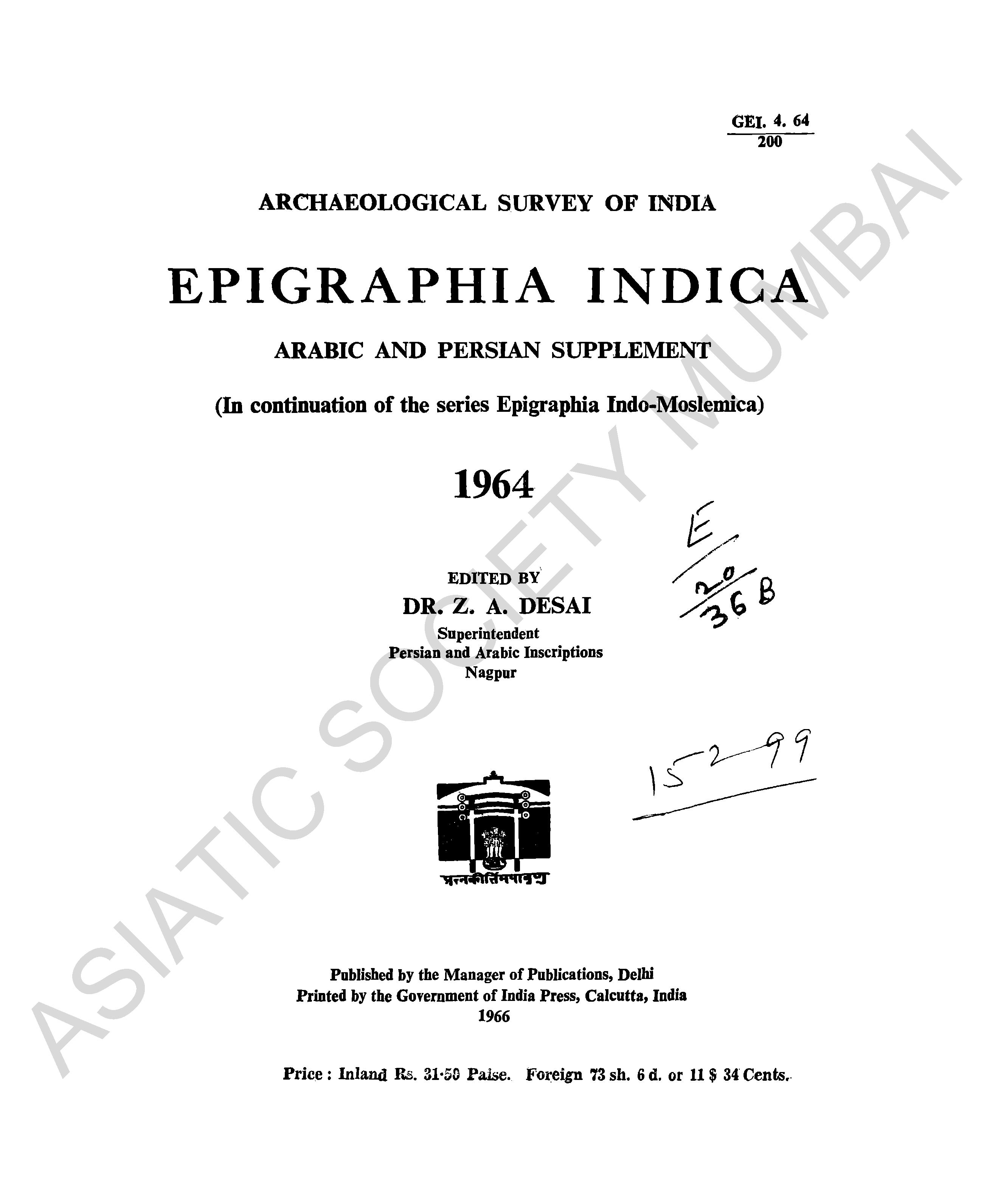 | Subject | : | Inscriptions Arabic - India, Inscriptions Persian - India, India - Antiquities |