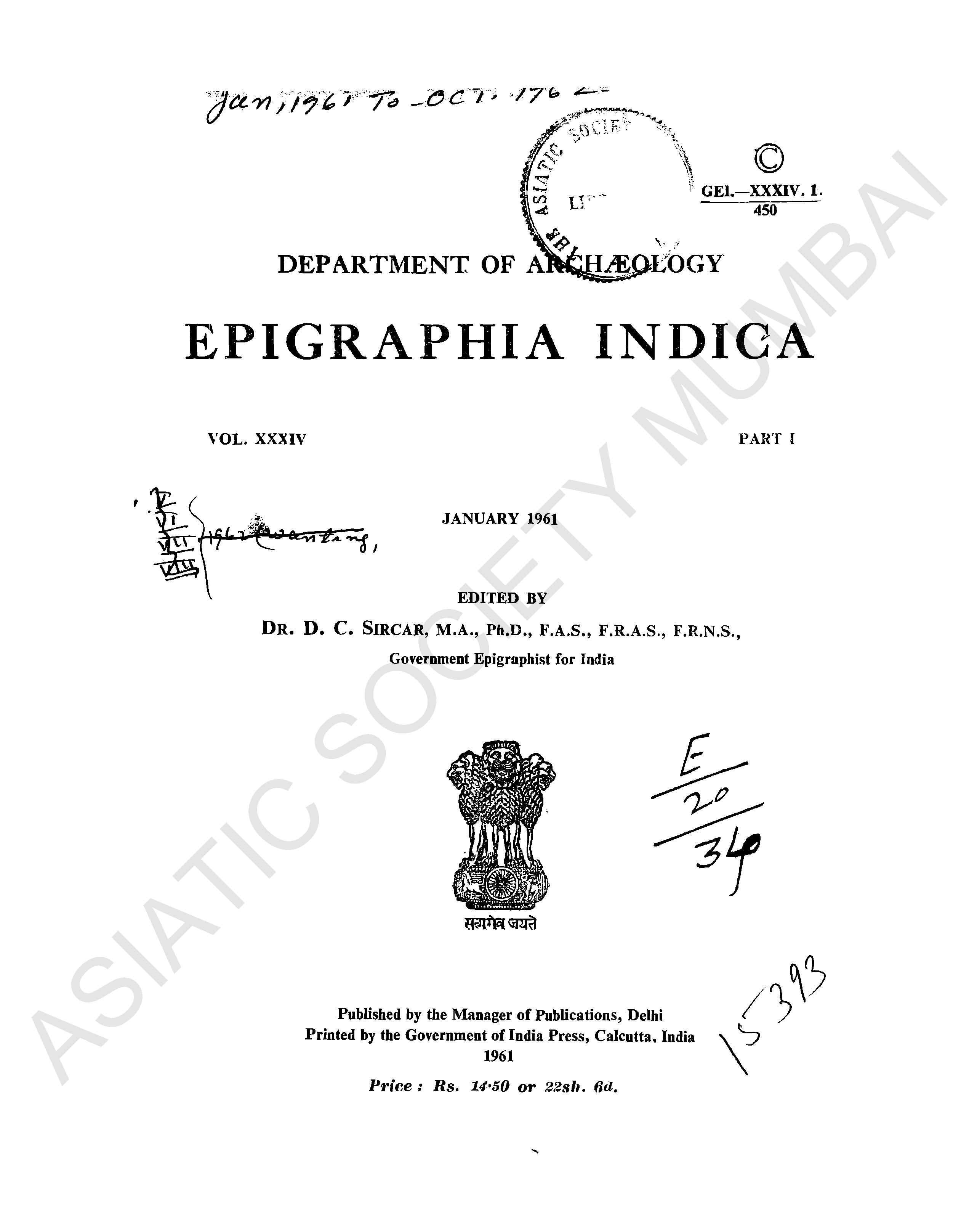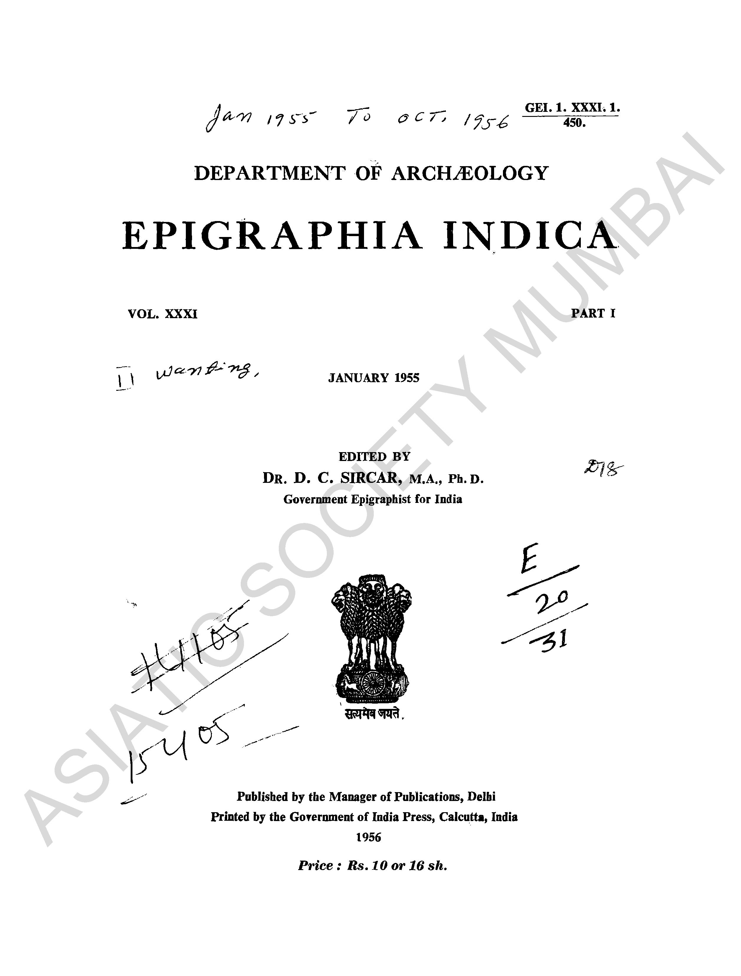 | Subject | : | Inscriptions - India, India - Antiquities, Inde - Antiquities |