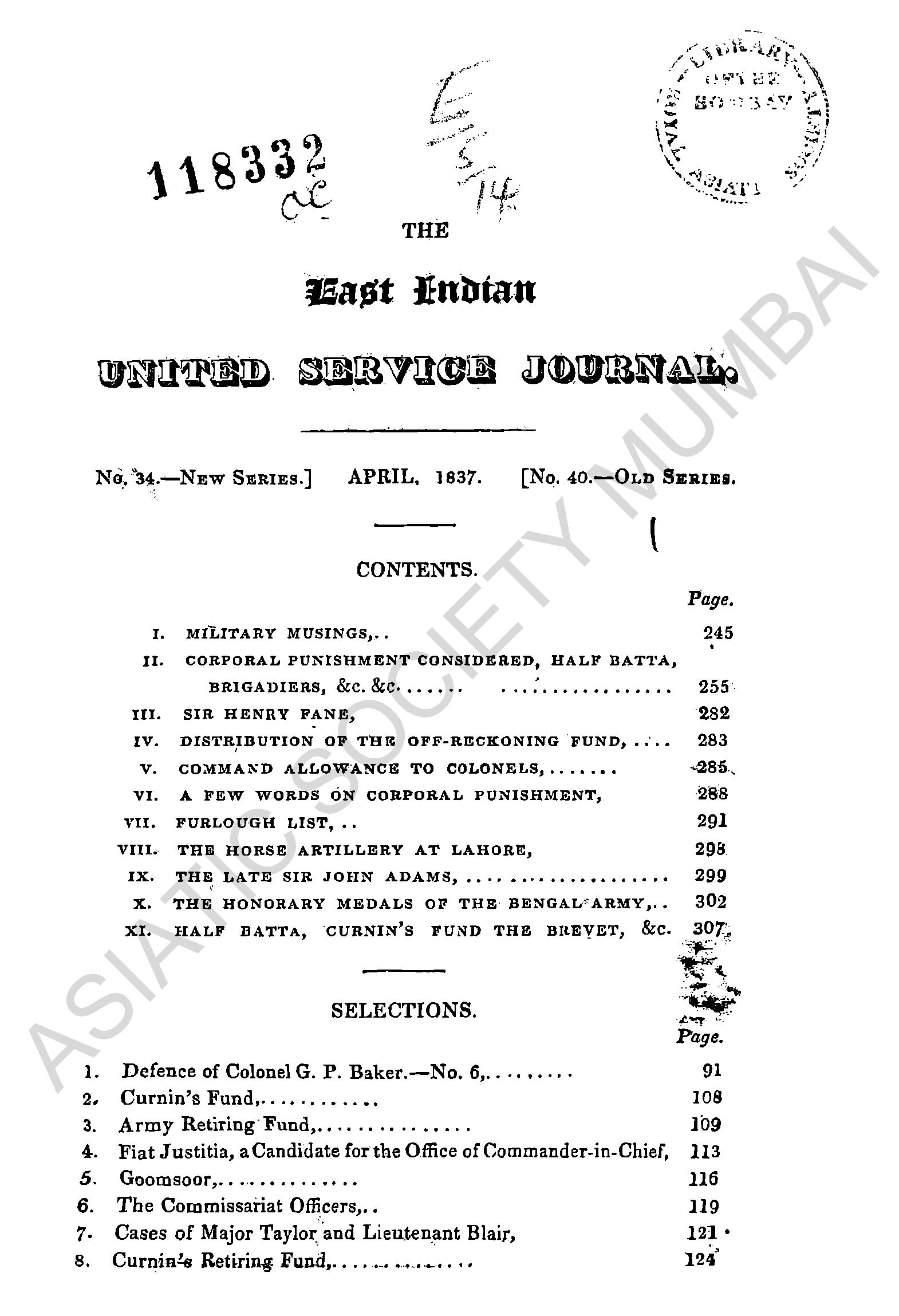 | Subject | : | East India company - army - history - sources; East India company - Army; Army Forces --Sources. |